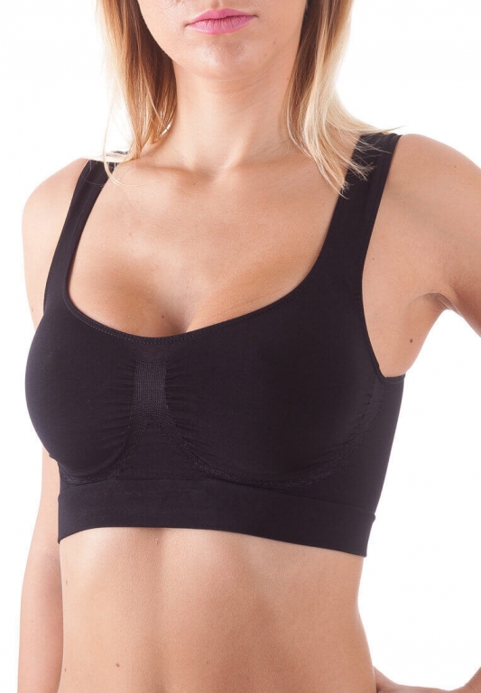 Топ-бюстгалтер с удобными широкими лямками из микрофибры. Приподнимает грудь, придает ей натуральную форму, не сковывает движений. Состав: Полиамид 91%, Эластан 9%