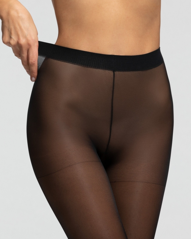 40 den läbipaistvad, matid, massaažiefektiga sukkpüksid. Tugevdatud ülaosaga ja vahetükiga, pehme vööosaga ja tugevdatud varbaosaga. Koostis: 87% polüamiid, 13% elastaan