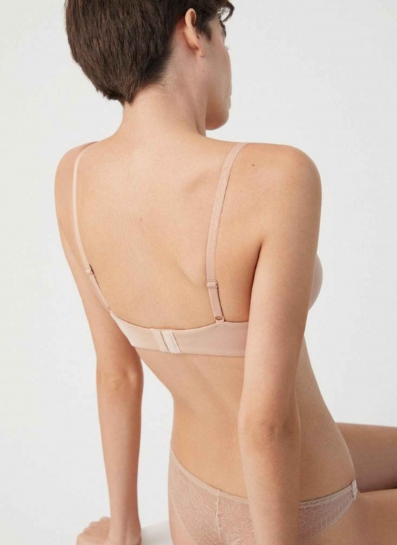 Polsterēts krūšturis ar smalku mežģīni, kas sedz krūštura centrālo daļu un plecus. Sastāvs: 84% poliamīds, 16% elastāns